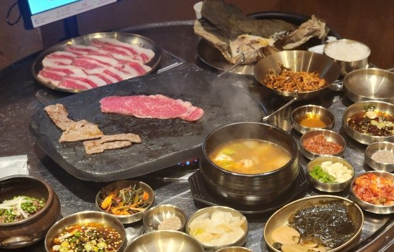 이곳의 대표 메뉴는 당연히 한우 돌판 구이입니다. 일반 철판이나 불판과 달리, 두꺼운 돌판 위에서 고기를 구워내기 때문에 육즙이 빠져나가지 않고 고기의 본연의 맛이 살아납니다. 구워지는 동안 풍겨오는 고소한 향은 입맛을 자극하며, 입안에 넣는 순간 느껴지는 부드러움과 촉촉함은 “역시 한우구나”라는 감탄을 절로 이끌어냅니다. 특히 한우 모둠 세트는 다양한 부위를 한 번에 맛볼 수 있어 처음 방문하는 분들에게 인기가 많습니다. 또한, 다양한 한우 부위가 준비되어 있어 기호에 맞게 선택할 수 있으며, 모두 국내산 한우를 사용하기 때문에 신뢰감이 큽니다.