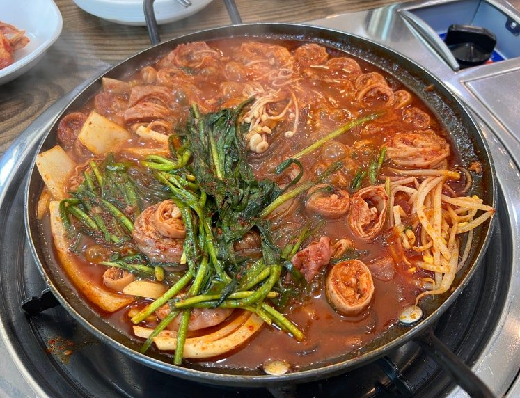 또한, 해물찜은 신선한 해산물이 가득 들어가 있어 풍미가 뛰어났습니다. 큰 게와 두부, 신선한 채소들이 어우러져 한 그릇의 요리로 완성되었습니다.