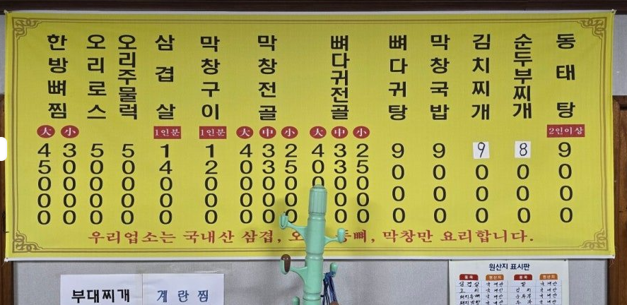 강조네회관의 메뉴는 다양합니다. 특히 해산물 요리와 국물 요리가 유명하며, 뼈찜, 막창, 동태탕 등 다양한 한식 메뉴를 제공합니다. 이곳의 대표 메뉴 중 하나인 동태탕은 신선한 재료로 만들어져 깊은 맛을 자랑합니다. 또한, 밑반찬으로 제공되는 다양한 반찬들도 집밥을 생각나게 하는 맛입니다.