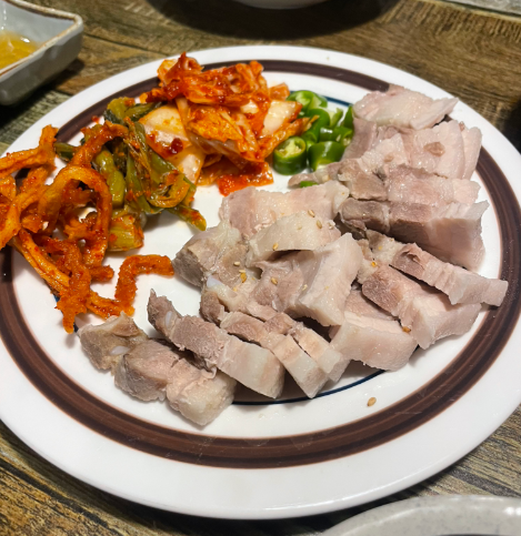 보쌈과 수육도 인기 메뉴 중 하나로, 잡내 없이 부드럽게 삶아낸 고기는 김치와 함께 곁들여 먹으면 일품입니다. 고기의 식감이 촉촉하면서도 담백해 누구나 즐길 수 있으며, 술안주로도 손색이 없어 저녁 시간에는 단골손님들의 테이블에 자주 오르는 메뉴입니다.