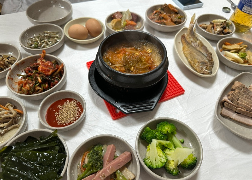특히 인상 깊었던 건 “기본 상차림 + 식사 양상”이라 표현하고 싶은 요소들입니다. 우선 나오는 반찬들이 정갈하고 한 상 가득이며, 곧이어 나오는 “국물 또는 찌개”가 밥심을 살려줍니다. 마지막엔 볶음류 혹은 비슷한 구성의 메인 안주가 나와, 자연스럽게 밥을 더 비비게 만들어요.
