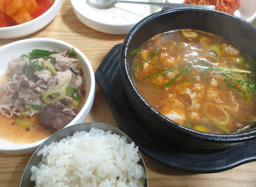 순대국밥은 부속 고기와 피순대가 풍부하게 들어가 있으며, 맑고 진한 육수가 자극적이지 않게 깊은 맛을 냅니다.