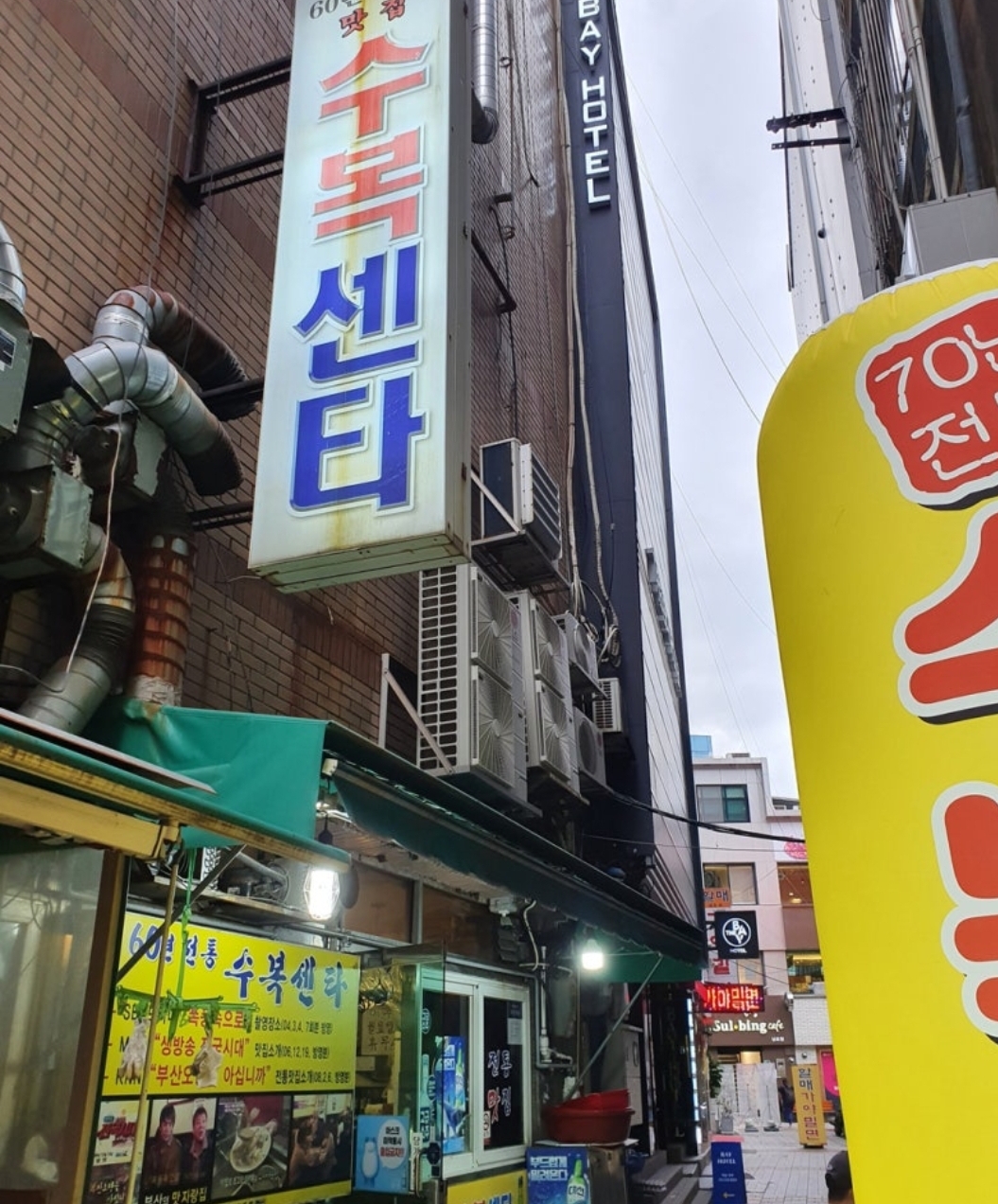부산 남포동에 위치한 수복센터(수복센타)는 60년 전통을 자랑하는 노포 맛집으로, 스지 어묵탕이 대표 메뉴입니다. 따뜻한 국물 요리와 함께 소주 한잔하기 좋은 분위기로 현지인과 관광객들에게 인기가 많습니다. 기본 정보 - 주소: 부산광역시 중구 남포길 25-3 영업시간: 화요일01:00 (월요일 휴무) 전화번호: 051-245-9986 주차: 개별 주차장은 없으며, 주변 공영·유료 주차장 이용 가능 대표 메뉴 - 스지 어묵탕: 28,000~30,000원 푸짐한 어묵과 스지가 들어가 깊고 구수한 국물 맛이 특징. 다다끼: 3,000~25,000원 나막스구이 및 열빙어구이: 각각 20,000원. 입구 - 수복센터의 입구는 오래된 간판과 골목 분위기를 자아내며, 전통적인 노포 감성을 느낄 수 있습니다. 커다란 홍보 간판이 붙어 있어 쉽게 찾을 수 있습니다. 내부 - 내부는 드럼통 테이블과 바석 등으로 구성되어 있으며, 좁지만 아늑한 분위기를 제공합니다. 벽에는 방송 출연 사진과 메뉴판이 걸려 있어 전통적인 느낌을 더합니다.