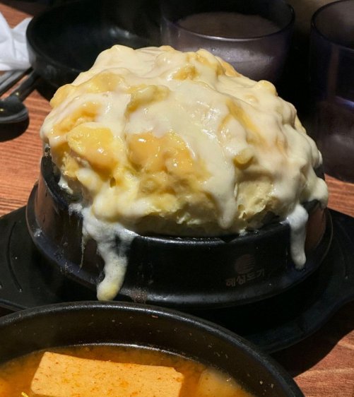 고기를 다 먹었다고 해서 자리를 뜨면 하수입니다! 육몽의 대미를 장식할 메뉴는 바로 '치즈 볶음밥'입니다. 곱창 기름과 고기 육즙이 배어난 불판 위에 볶아지는 밥, 그리고 그 위에 아낌없이 뿌려지는 눈꽃 치즈는 배가 불러도 포기할 수 없는 유혹이죠. 바닥까지 닥닥 긁어먹는 재미, 다들 아시죠?